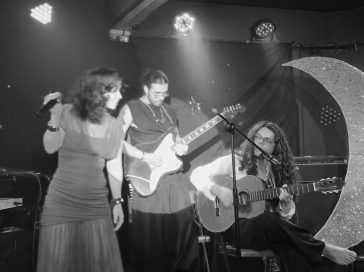 Tanto o palco da Ná quanto o figurino dos integrantes remetiam a um clima cigano tropicalista da música brasileira dos anos 70, algo que combinava muito com a sonoridade da banda. A fusão da voz grave da Raflor com as guitarras psicodélicas criava uma atmosfera quase mística, parecia que eu tava dentro de uma carta de Tarot.